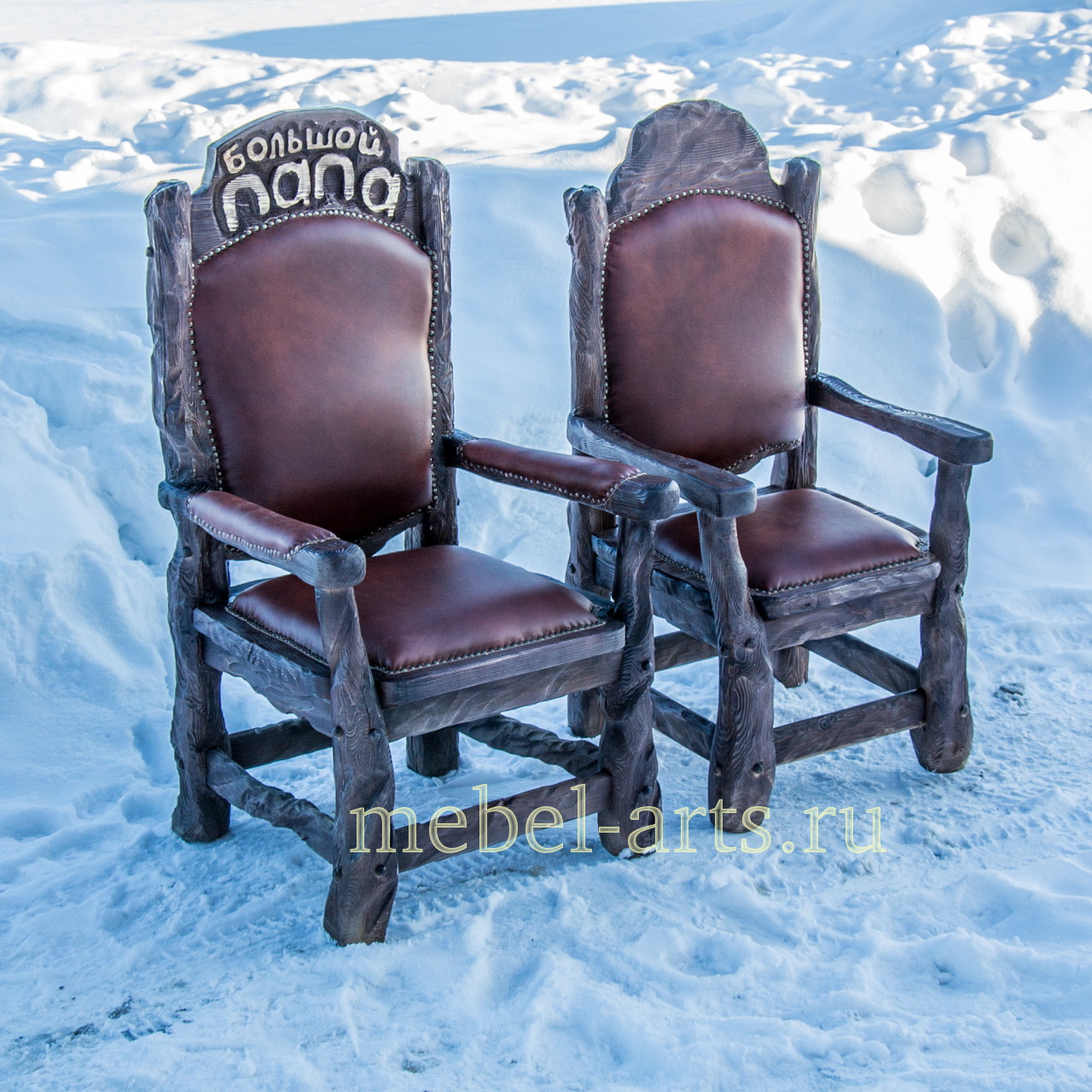 Кресло с кожаной обивкой и надписью