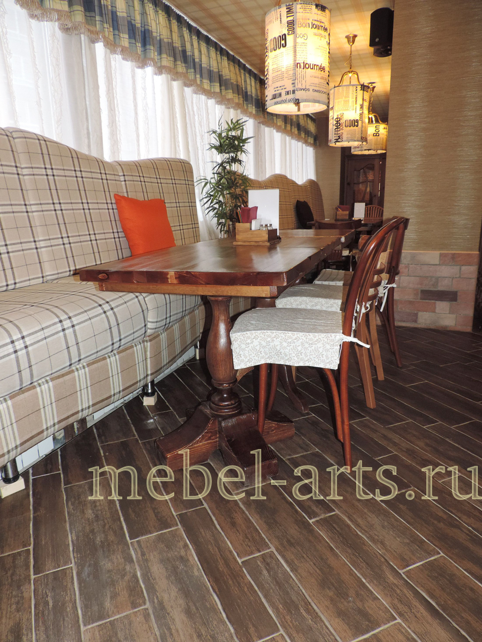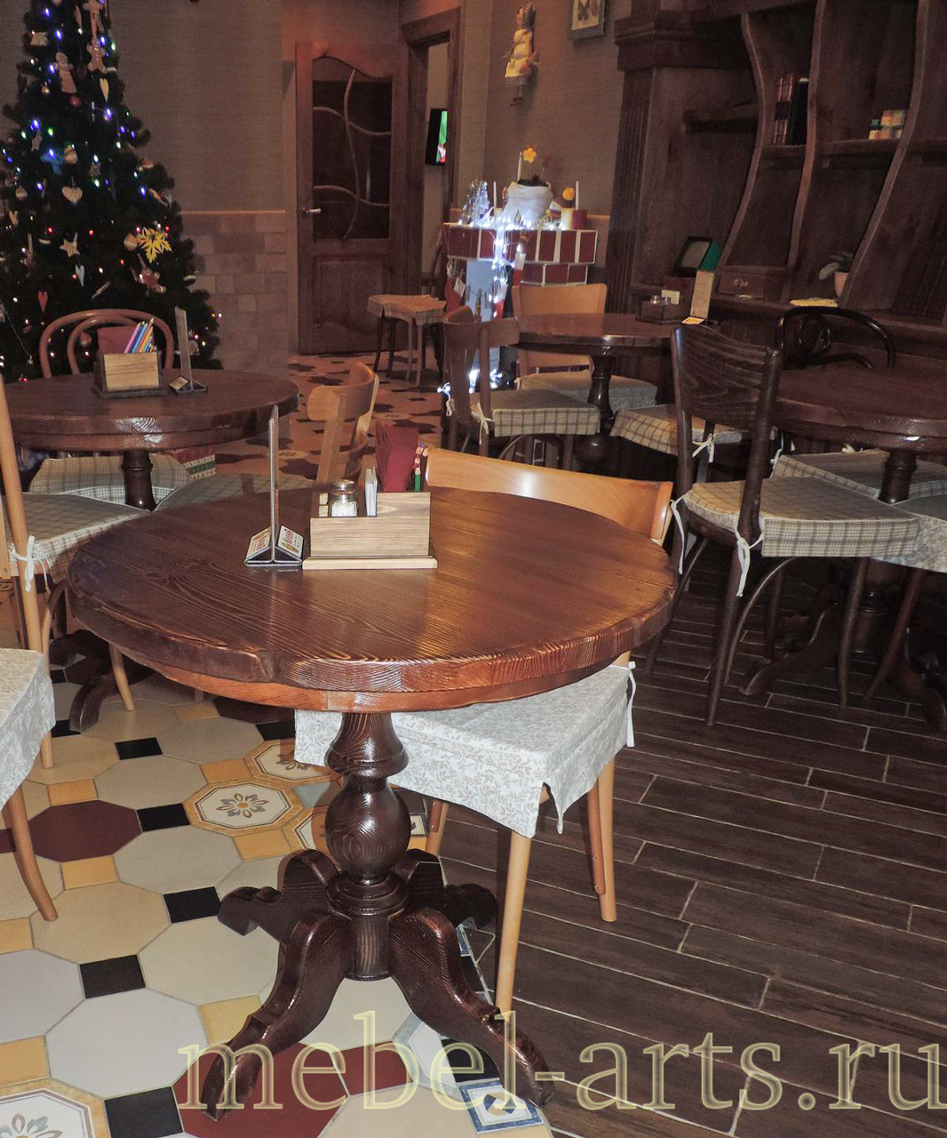 Мебель для ресторана из прочного массива сосны наполнит обстановку основательностью, ощущением уверенности и стабильности. Недаром сосна издавна ценилась корабелами. Сам Пётр Первый известен своим неравнодушным отношением к этому дереву.