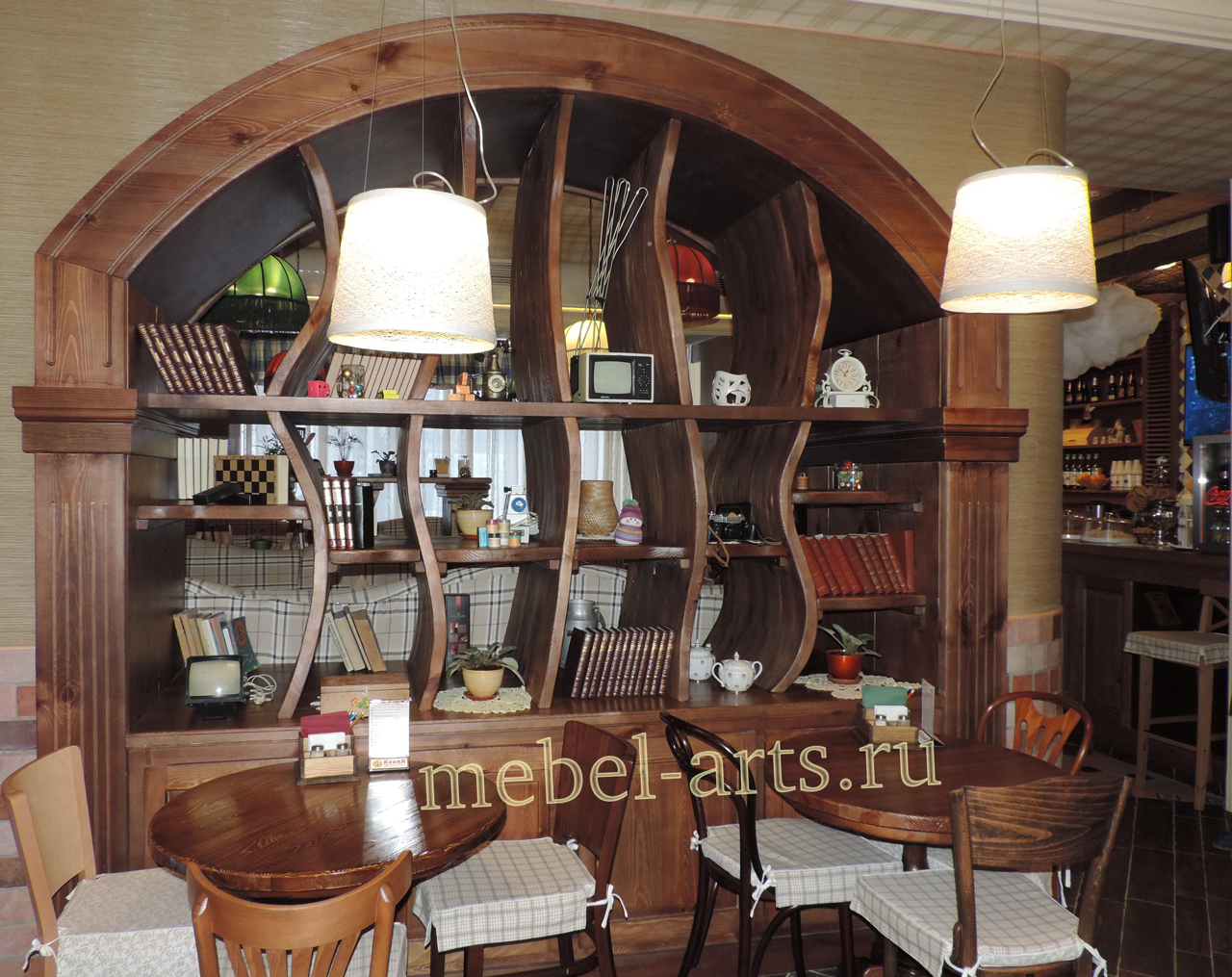 - гармоничные шкафы и шкафчики, узорные барные стойки, стеллажи и этажерки;