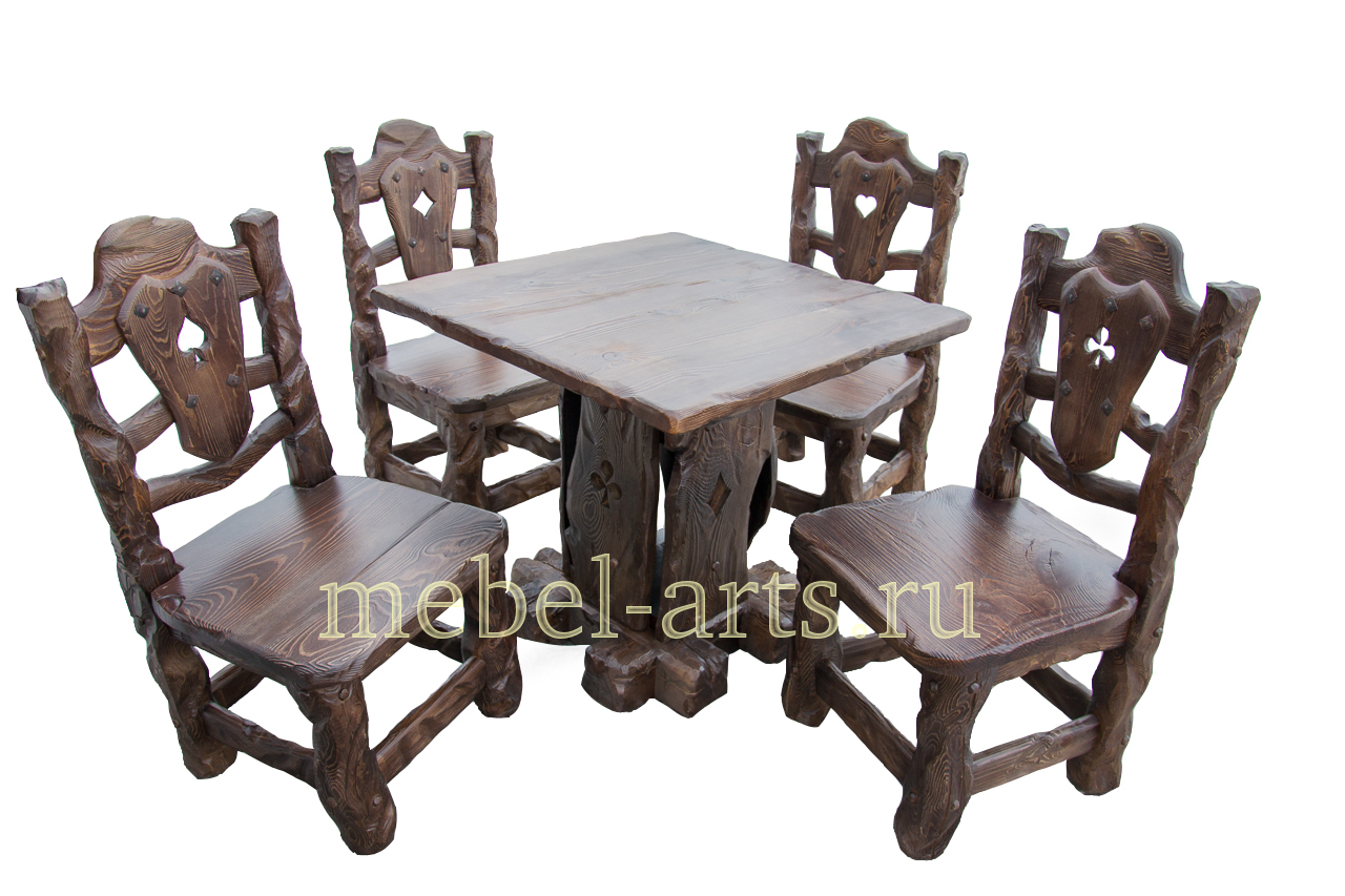 Вы можете заказать стул под старину – один, пару или набор из четырех штук – по числу карточных мастей. Цена стульев под старину на заказ невысока, если учитывать, что сделаны они из натурального дерева, выполнены по авторскому эскизу, искусно обработаны и смотрятся просто великолепно.